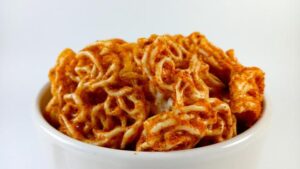 - Selanjutnya, masukkan kerupuk dan campurkan hingga semua bumbu merata dan menyelimuti seluruh kerupuk